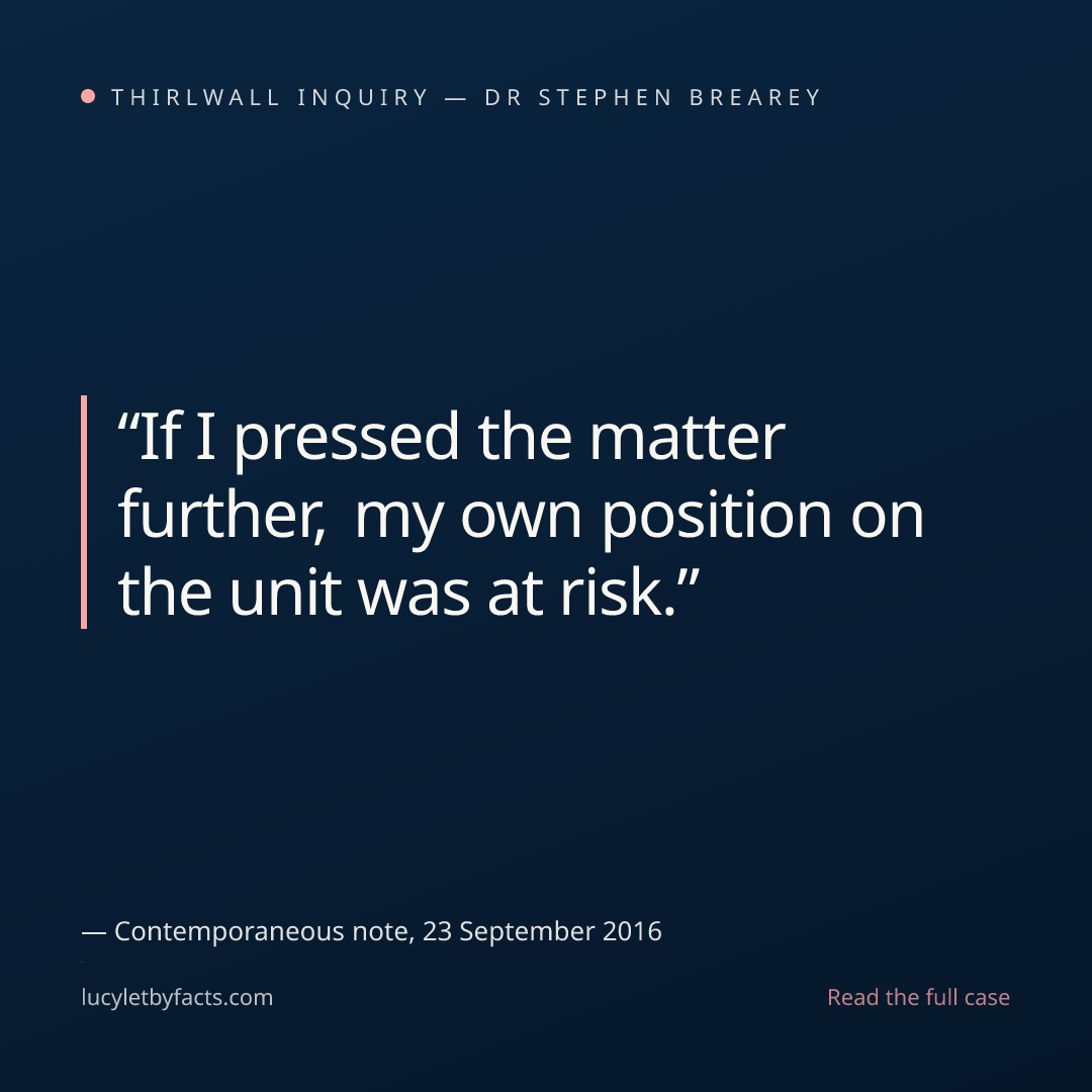 “If I pressed the matter further, my own position on the unit was at risk.”