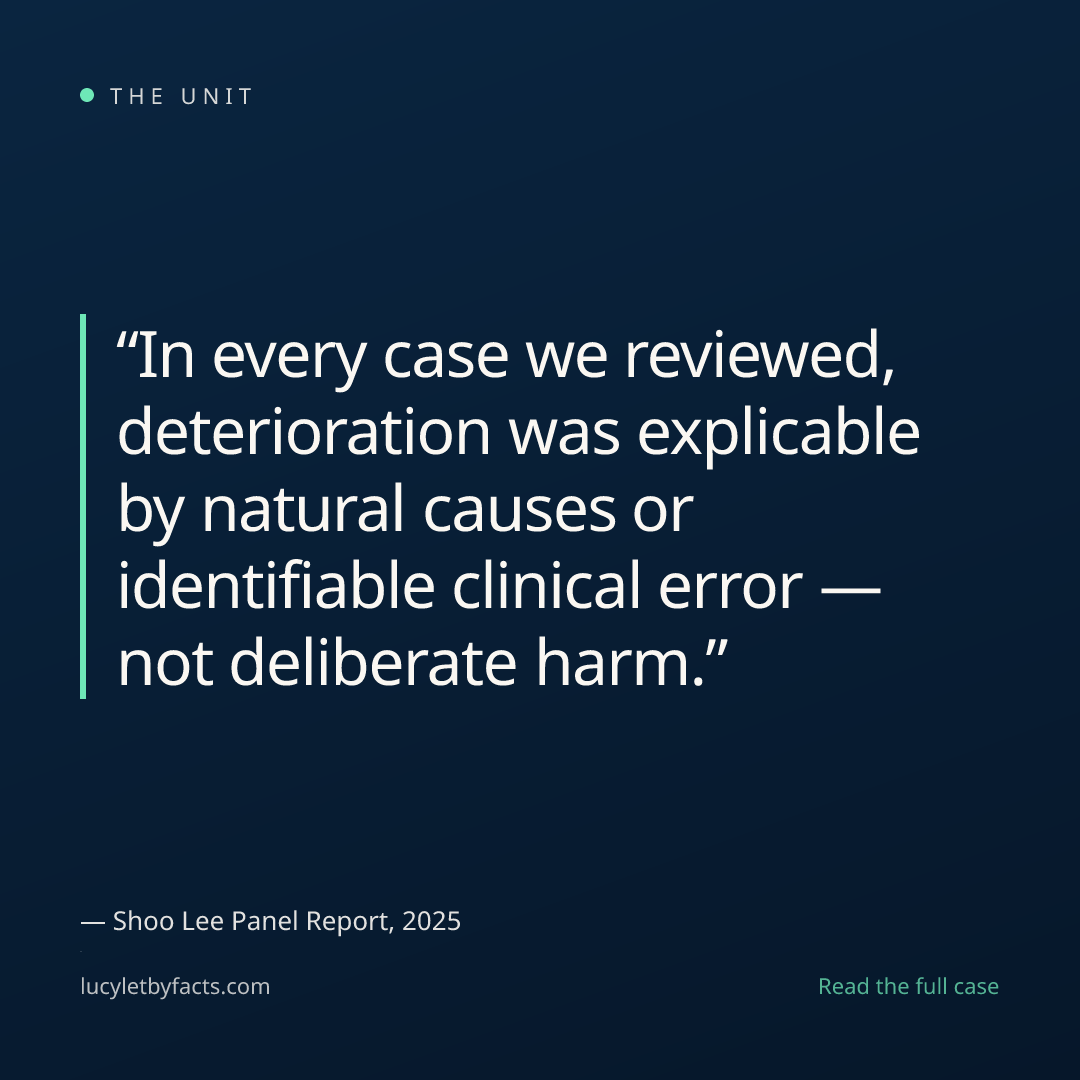 “In every case we reviewed, deterioration was explicable by natural causes or identifiable clinical error — not deliberate harm.”